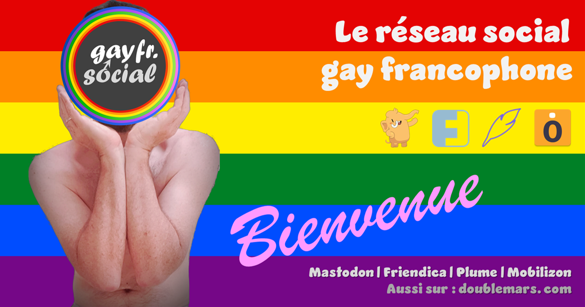 ⚣ Disponible aussi sur doublemars.com !Bienvenue sur le réseau social gay francophoneCe serveur héberge une instance de Mastodon, média de micro-blogging libre et décentralisé. Vous pouvez partager avec les autres membres, ainsi que les membres des autres instances, automatiquement. Bienvenue !